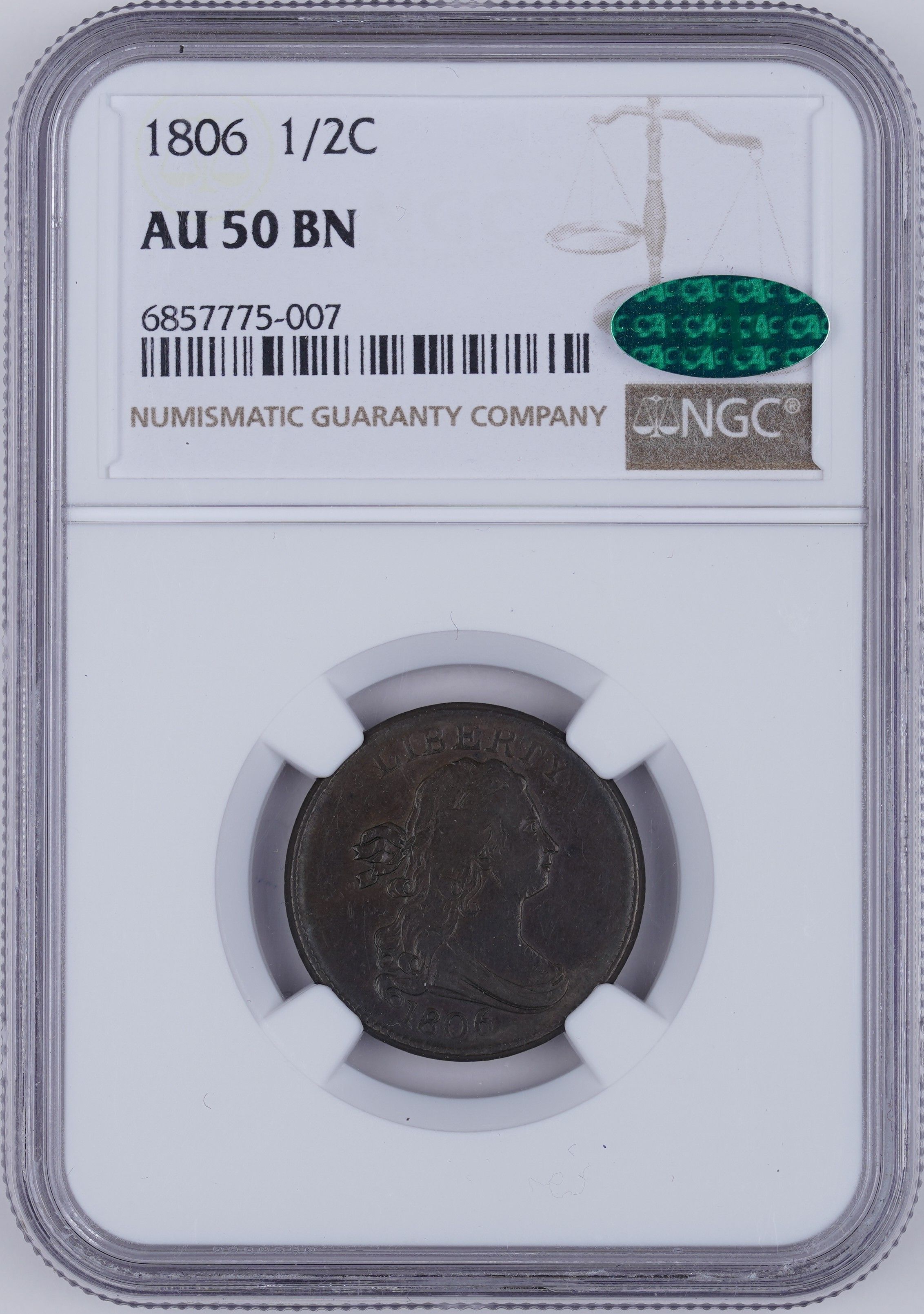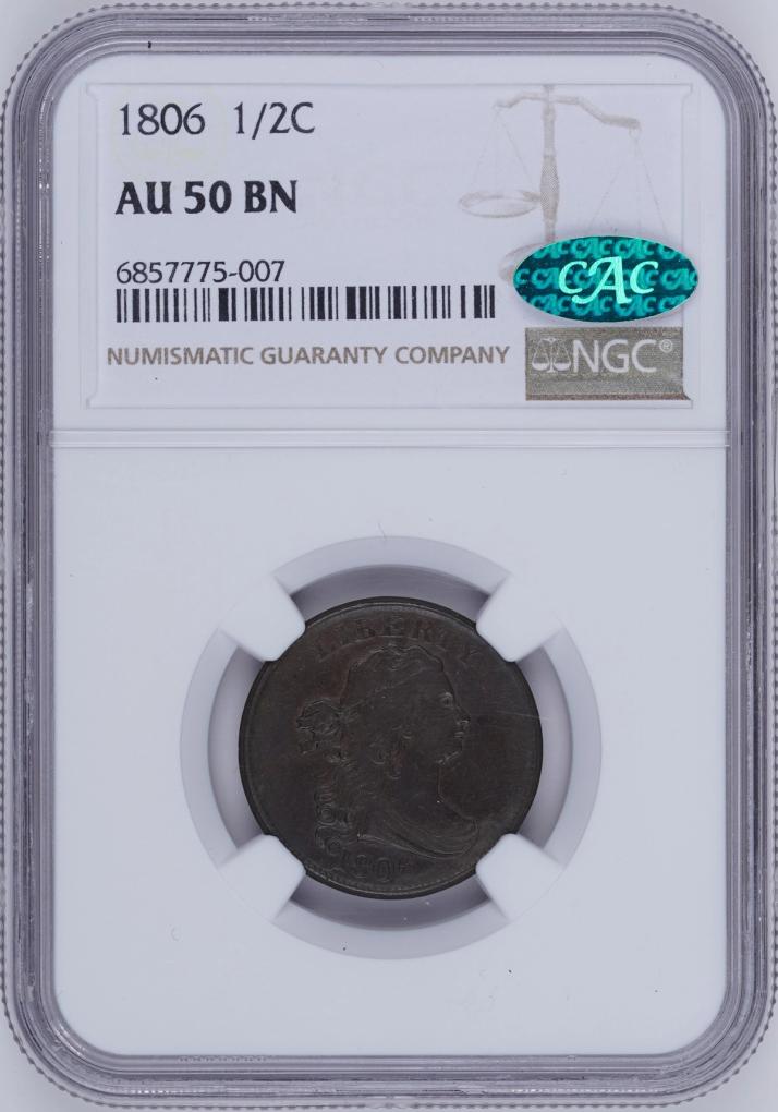 **1806 1/2C Draped Bust Half Cent NGC AU50 BN CAC**