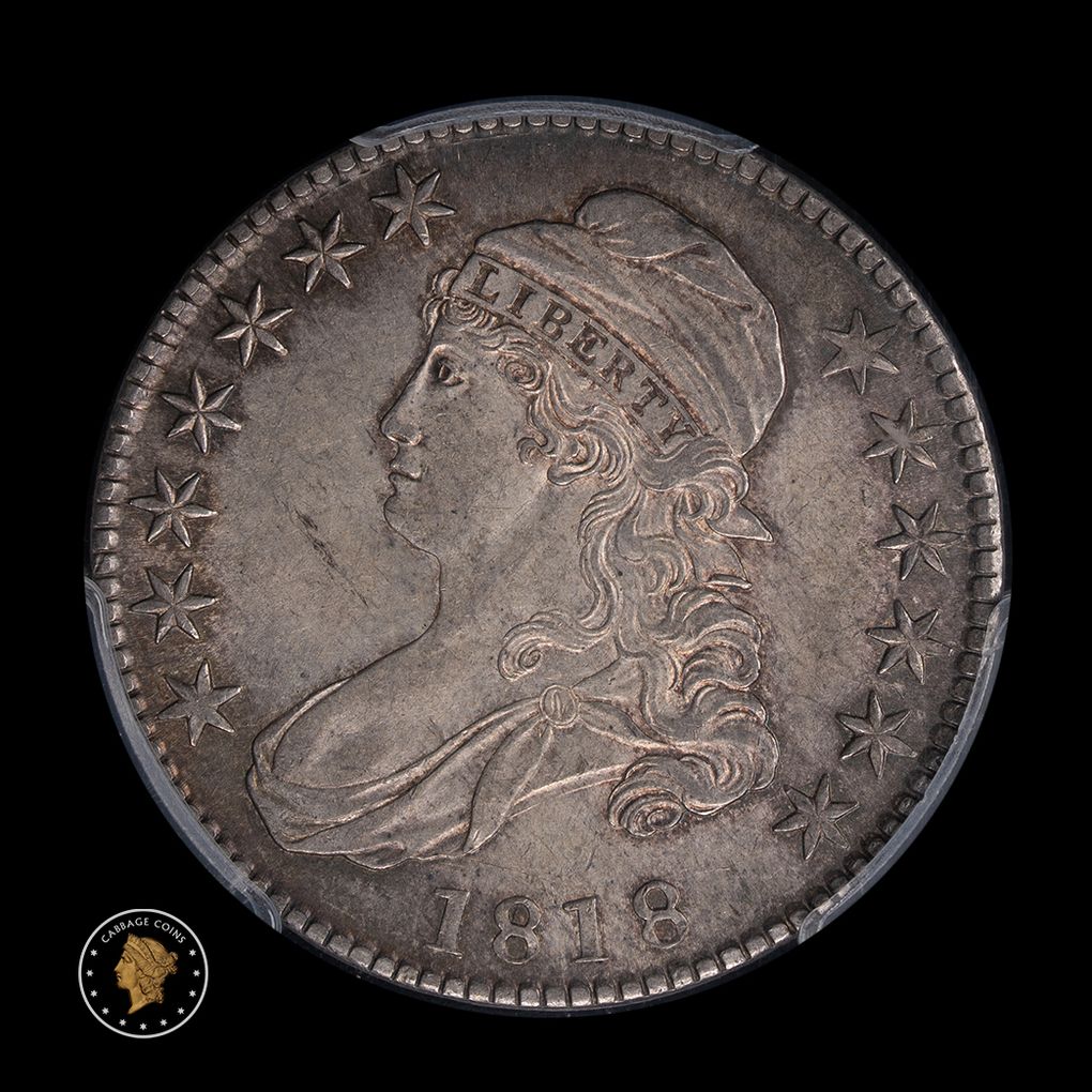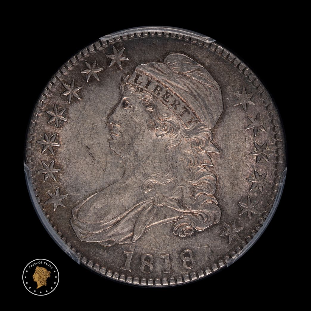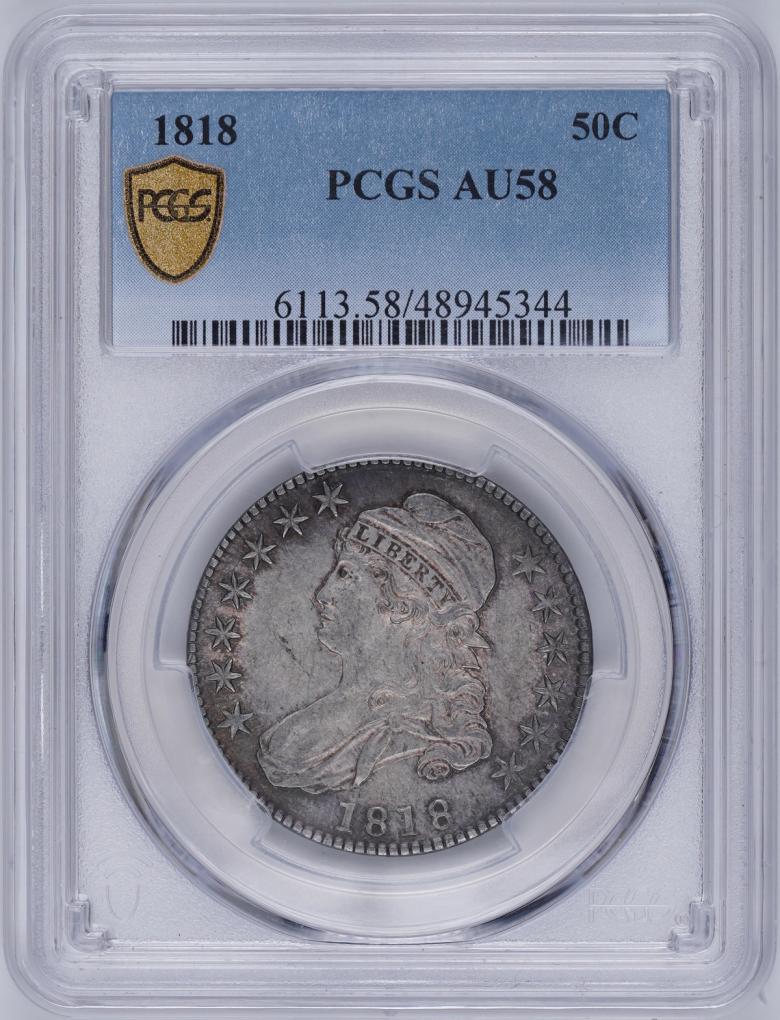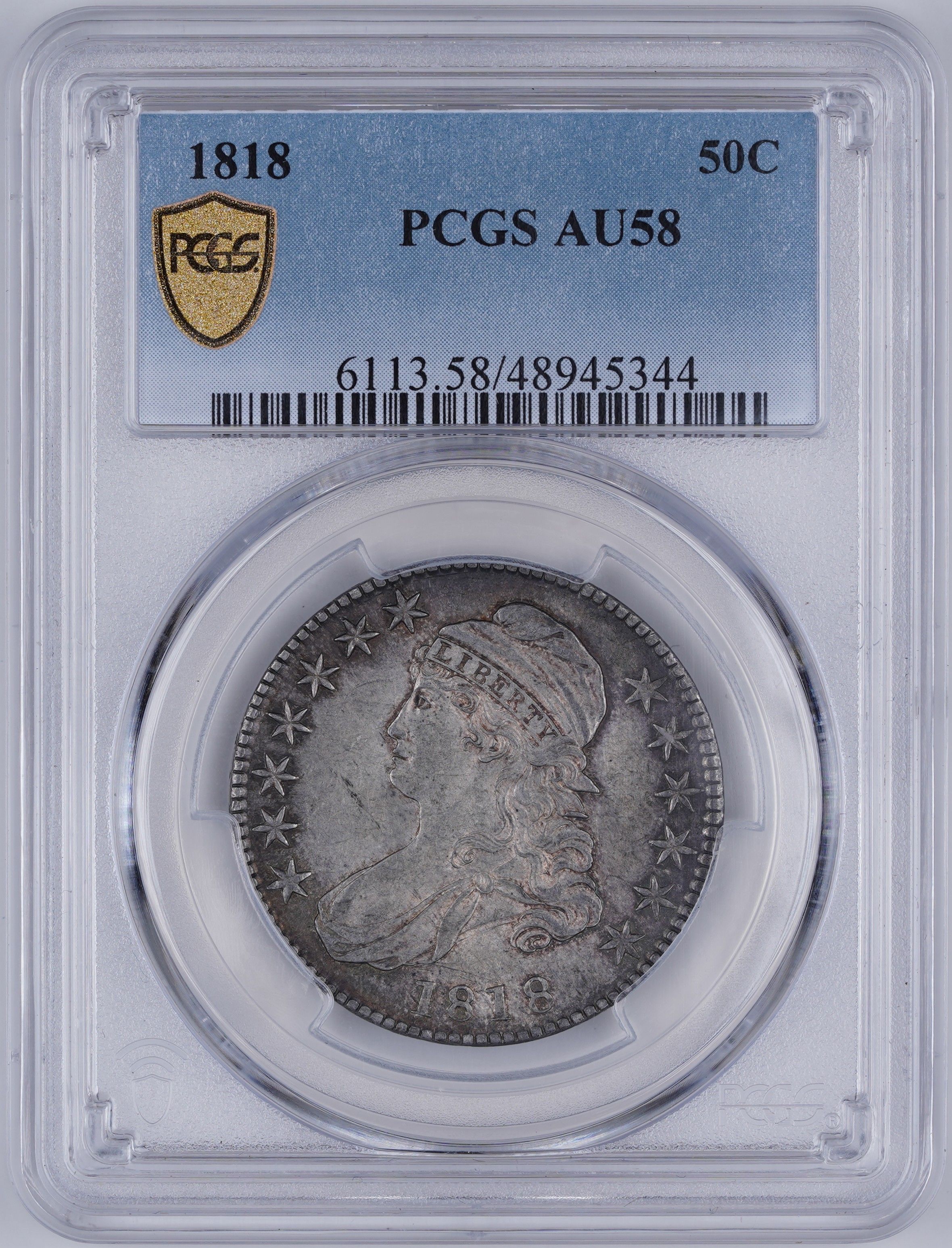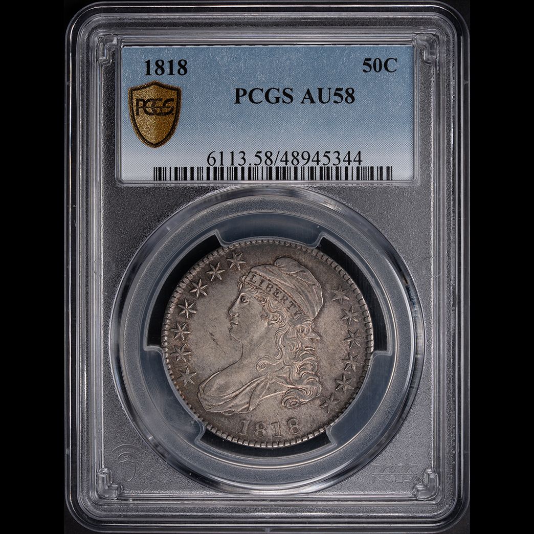 The capped bust half dollar is ever-popular with collectors. The main reason is the age of the coins combined with great eye appeal on many examples. Also, they are fun to collect with the many dates, over-dates, and other interesting varieties in the series. For the 1818, there are only around 200 or so available at AU58 or above. Mint state examples of this date get very expensive.