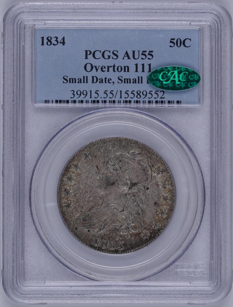 1834 50C Capped Bust Half Dollar PCGS AU55 CAC