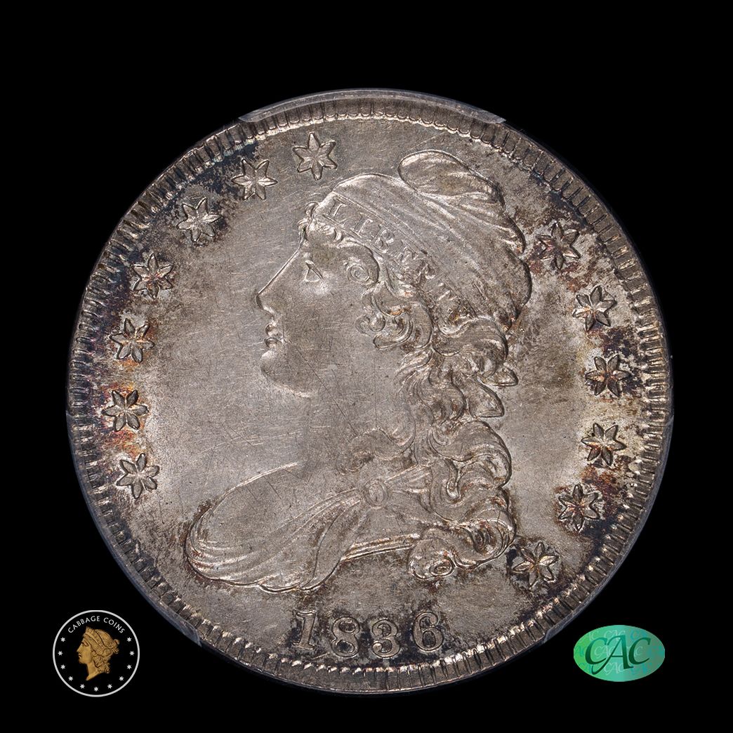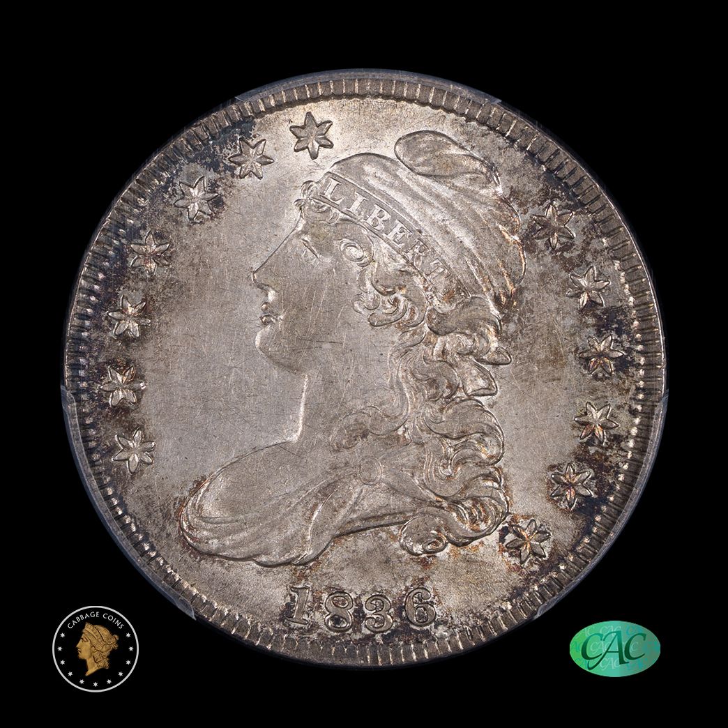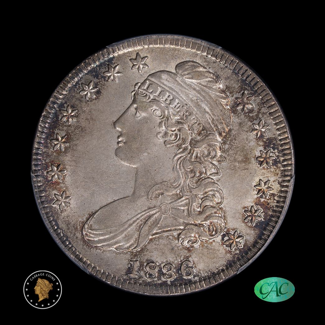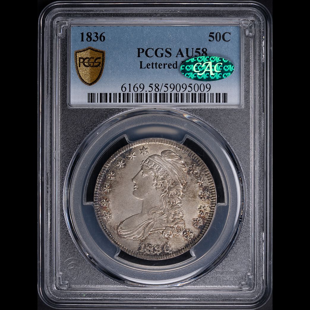 1836 50C Capped Bust Half Dollar Lettered Edge PCGS AU58 CAC
