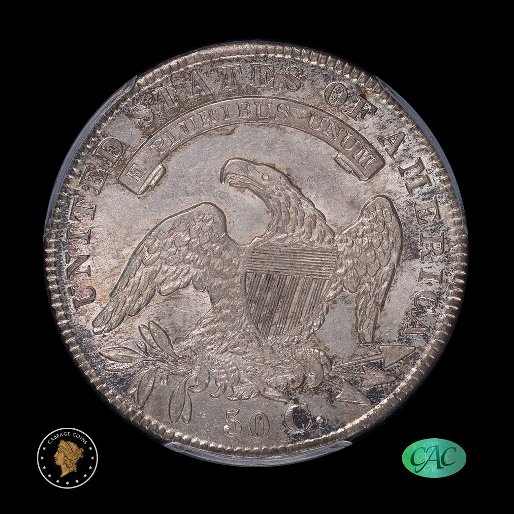 I've seen a lot of capped bust halves, but not many like this. I think the originality is stunning as the splashes of color adorn both the obverse and reverse sides. Excellent luster.