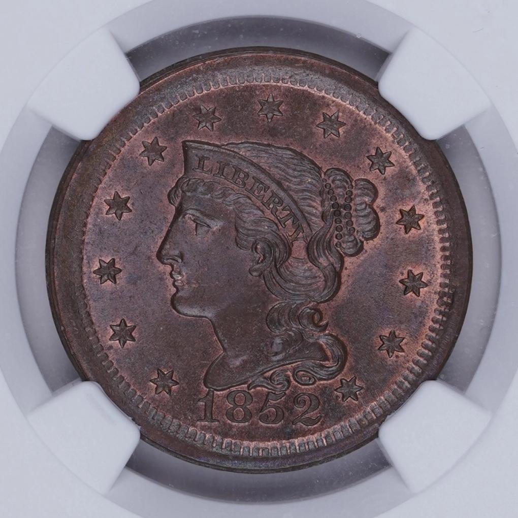 1852 1C Coronet Head Large Cent NGC MS66+ BN CAC