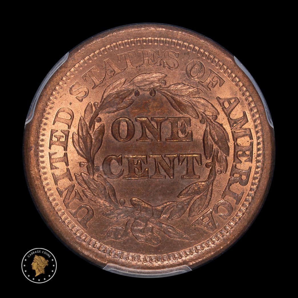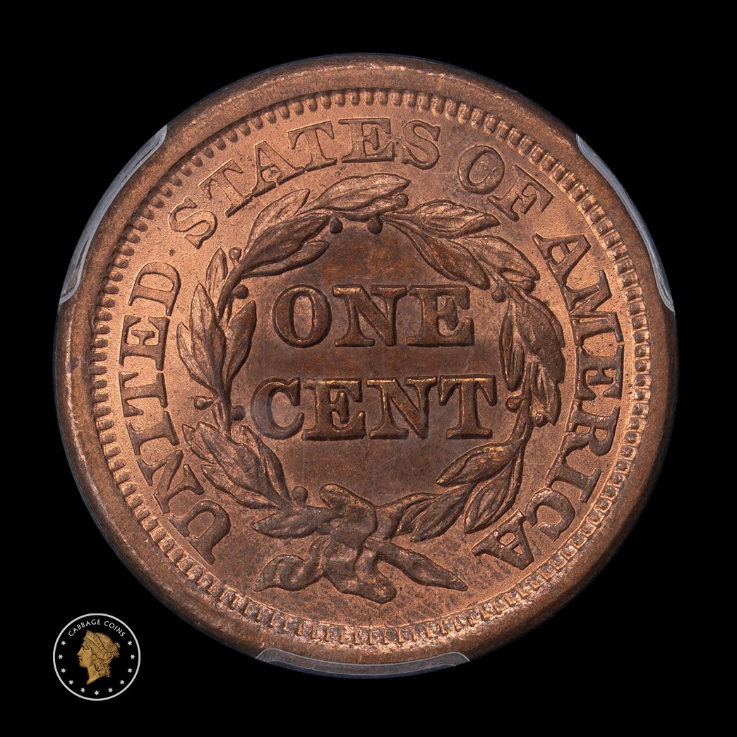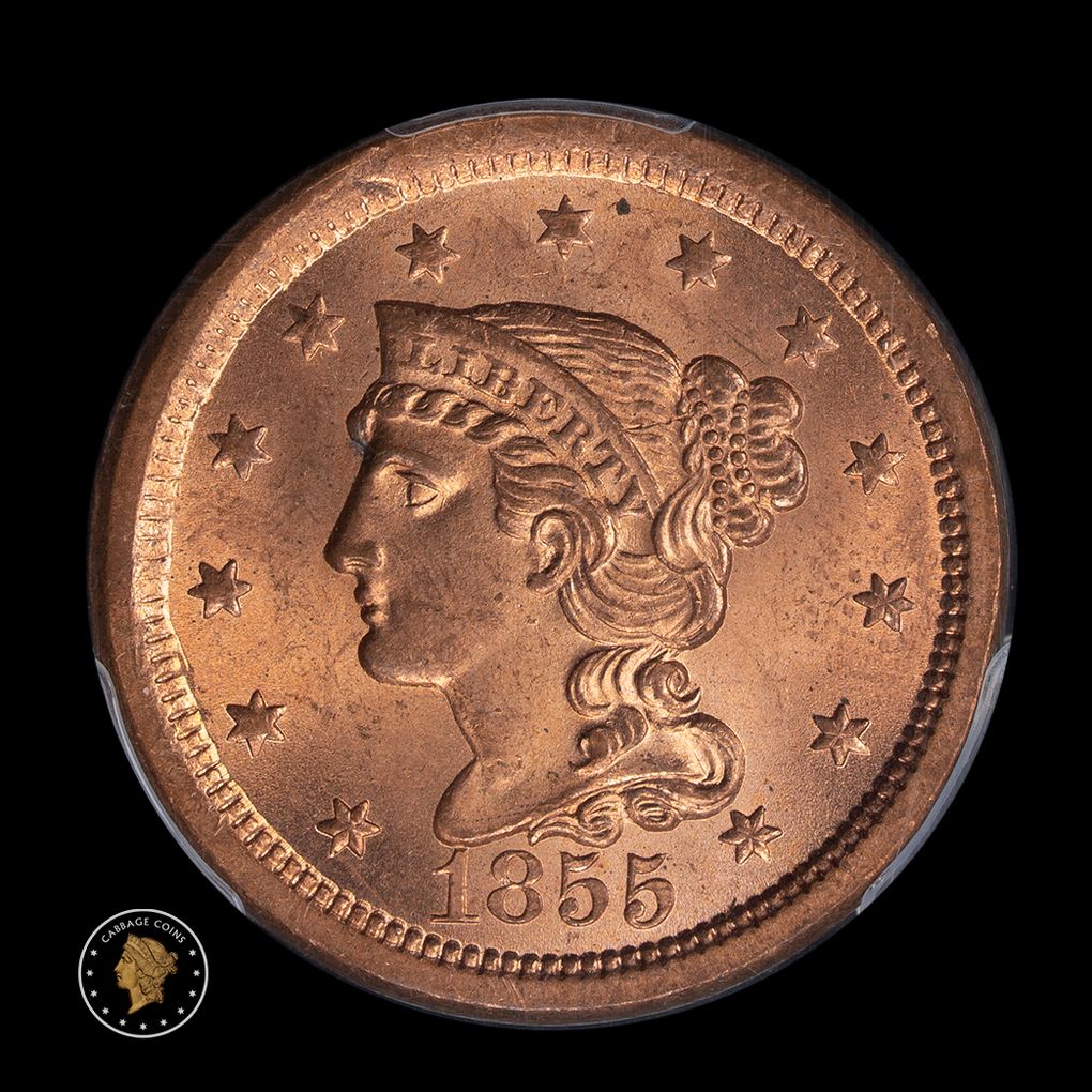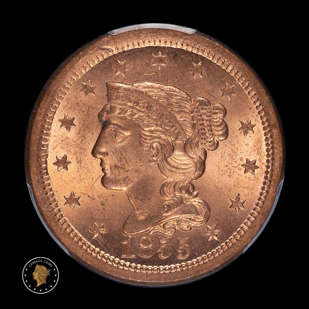 The obverse doesn't get any more red than this 1855 coin. If the reverse looked similar, this would likely be $3500 or more. This is a beautiful piece with lovely color and luster. The 1855 is common, but not like this!