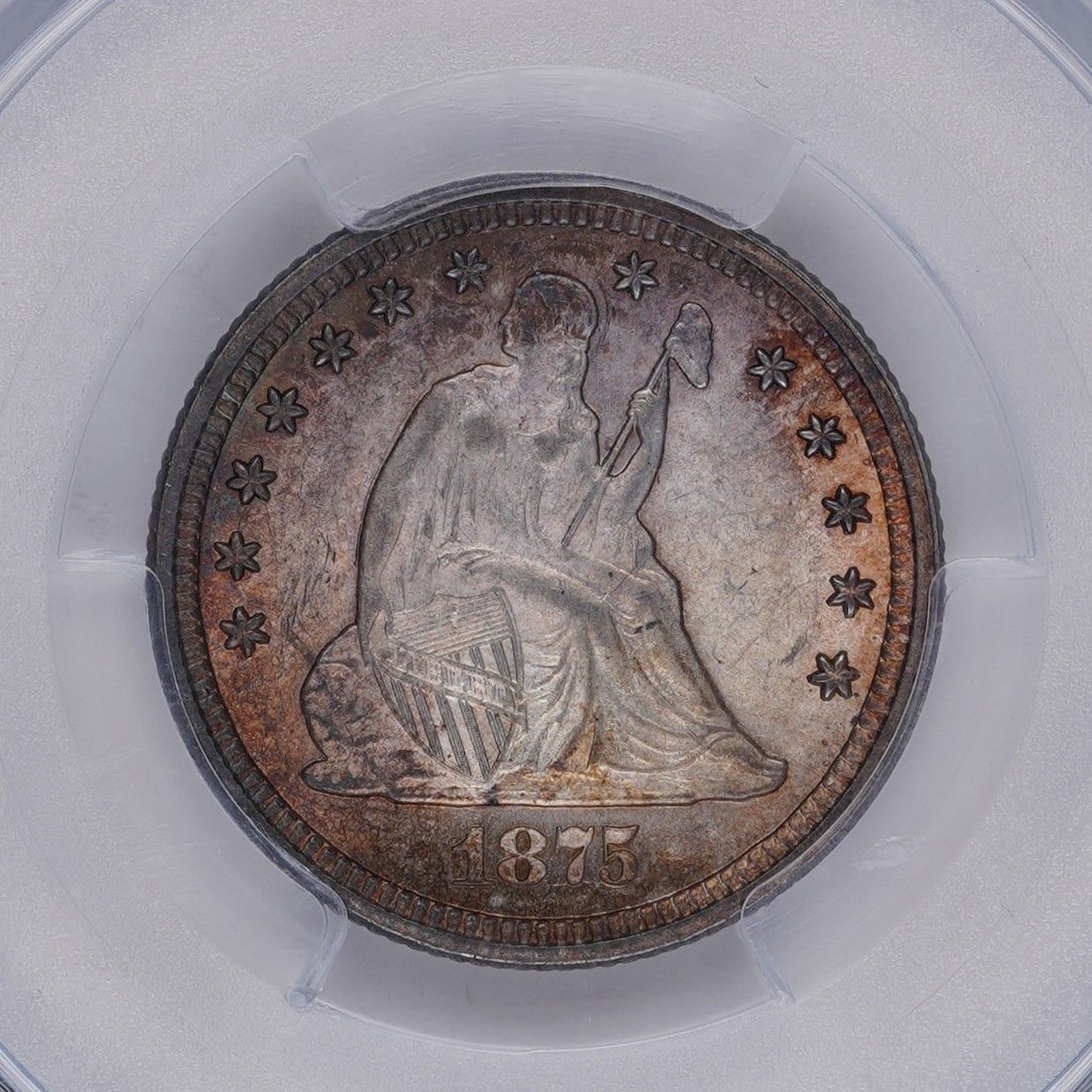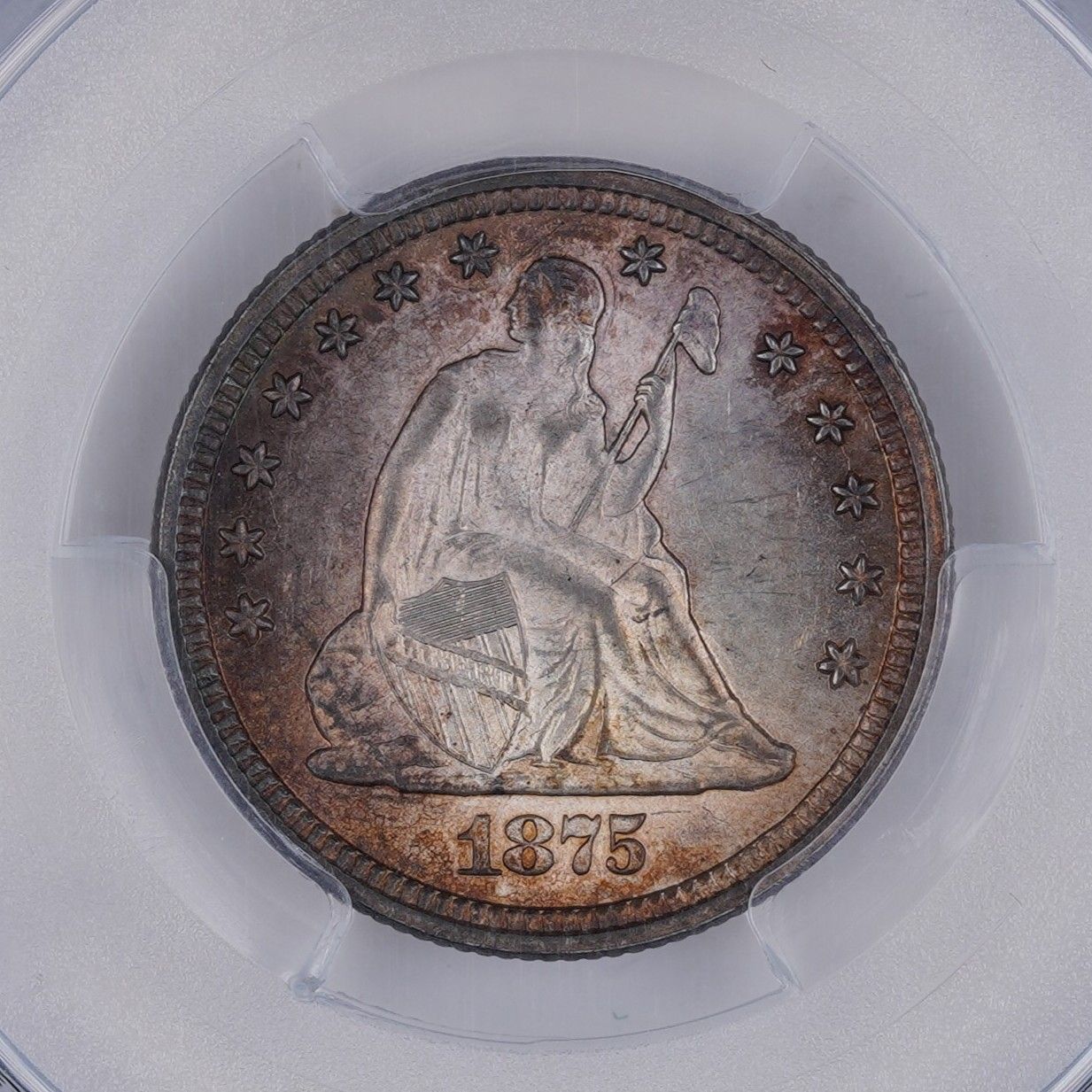 Sometimes you just want a nice example of the type. The 1875 quarter isn't particularly rare (mintage 4.2 million, with a couple hundred survivors in mint state). That said, the coin is lovely with a lot of original mint luster, pleasing toning on the obverse and nice, strong character.