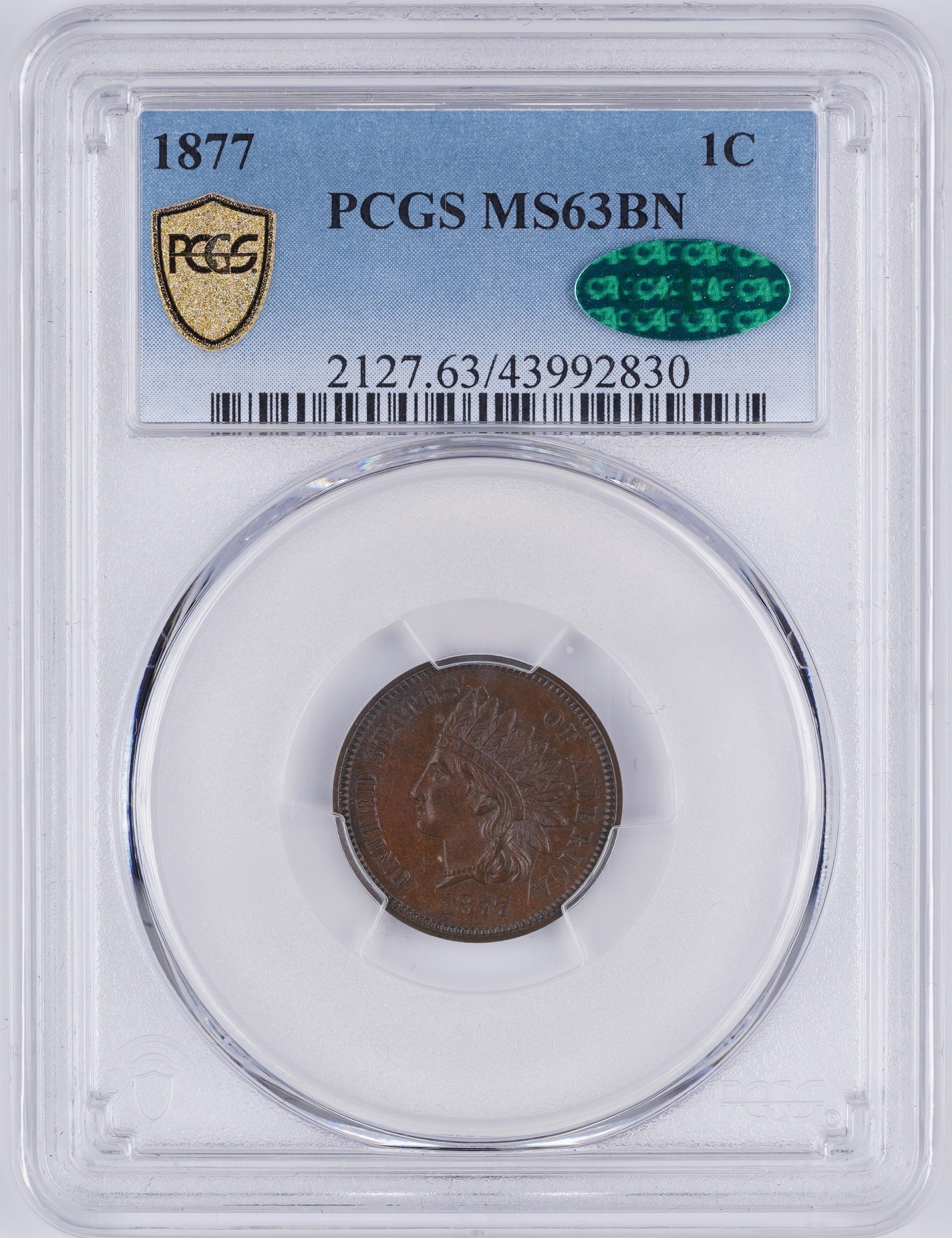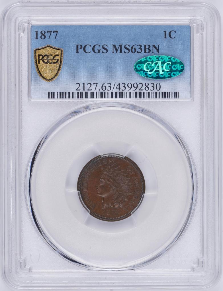 1877 1C Indian Head Cent PCGS MS63BN CAC