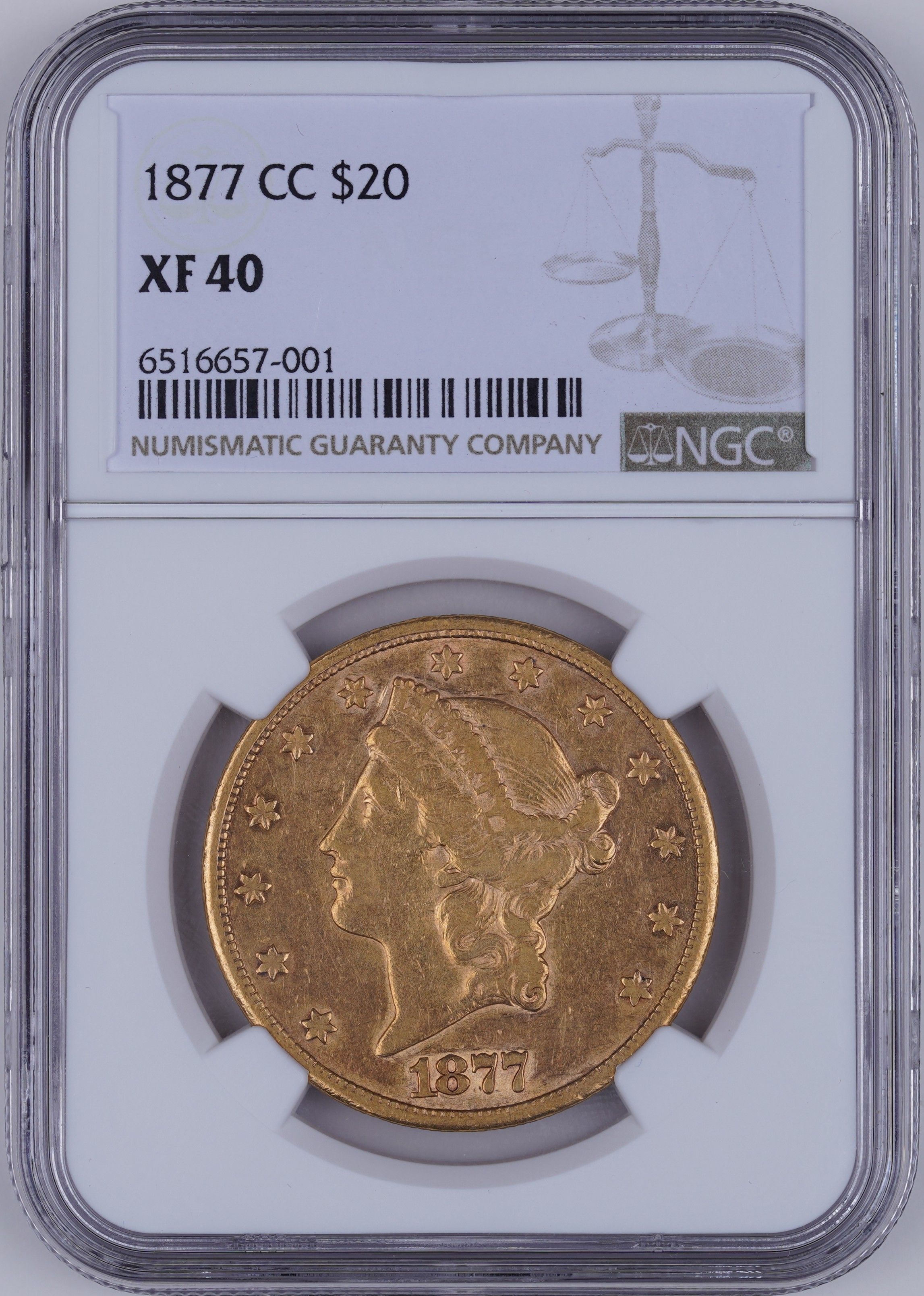 1877-CC $20 Liberty Head Double Eagle NGC XF40