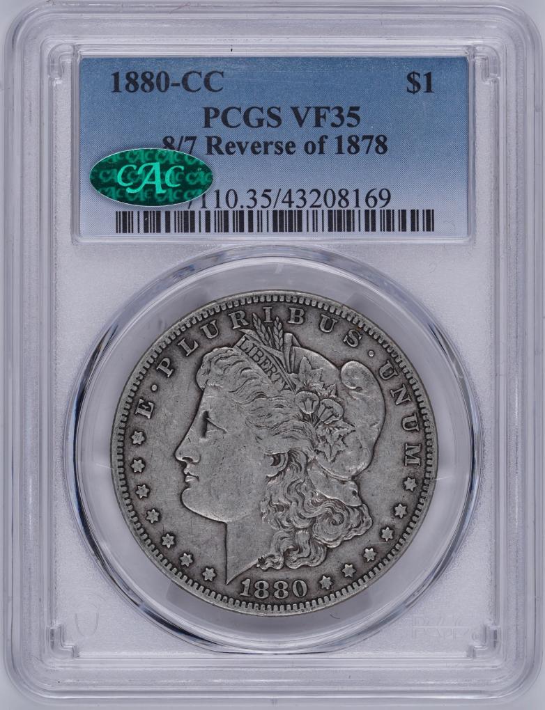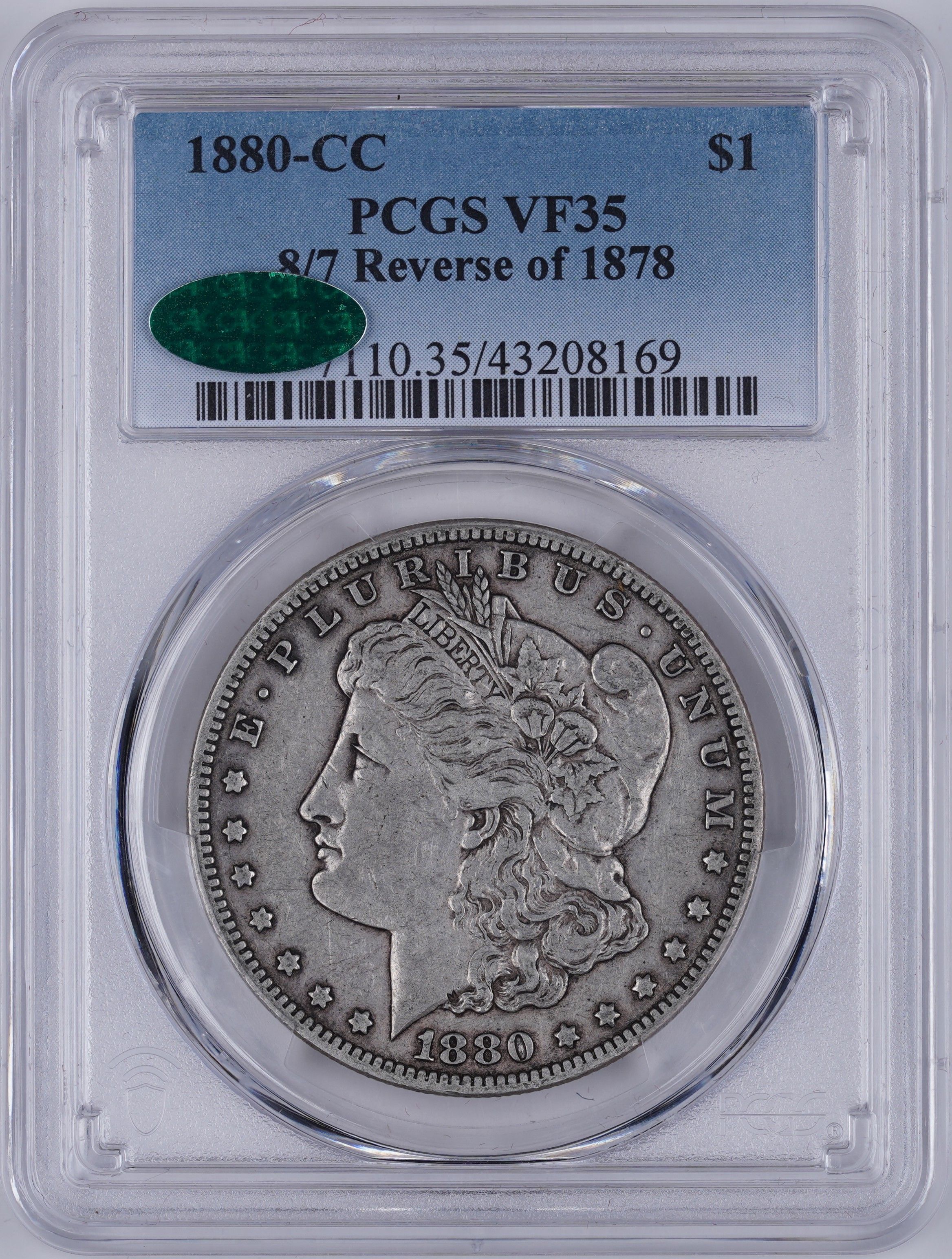 1880-CC $1 Morgan Silver Dollar PCGS VF35 CAC 8/7 Reverse of 1878