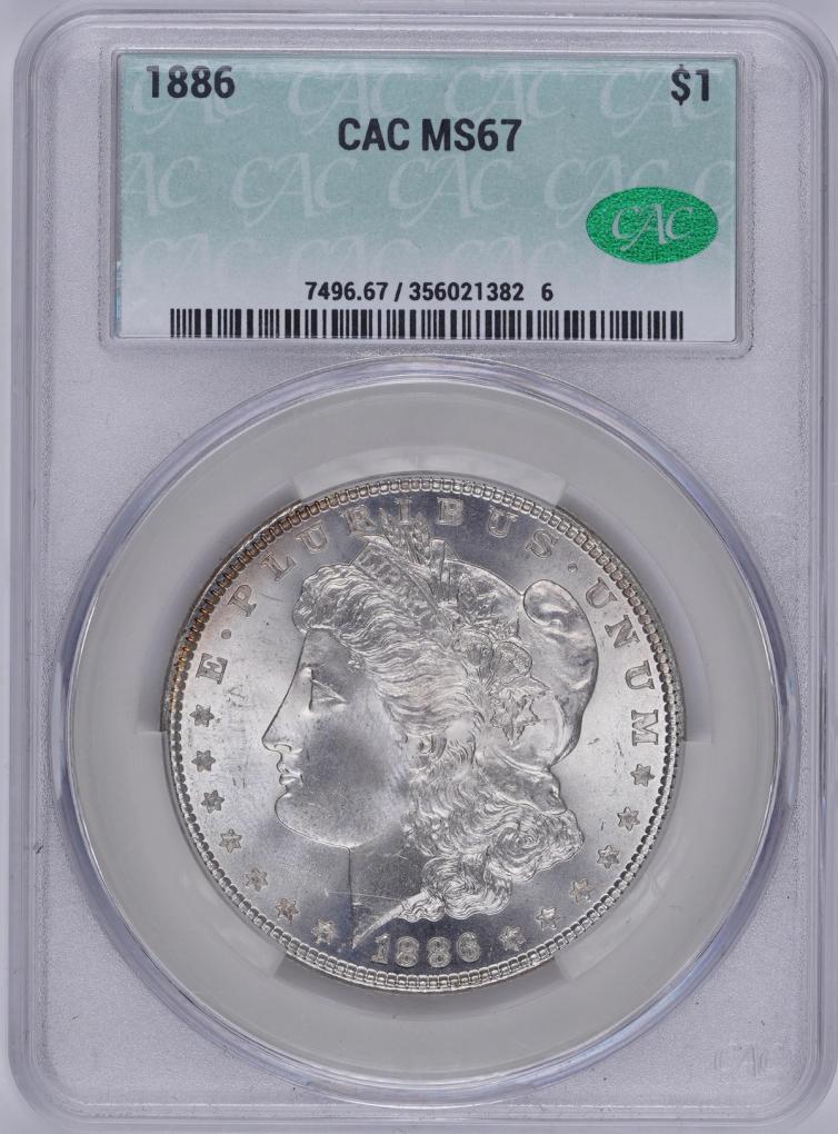 **1886 $1 Morgan Silver Dollar CACG MS67**