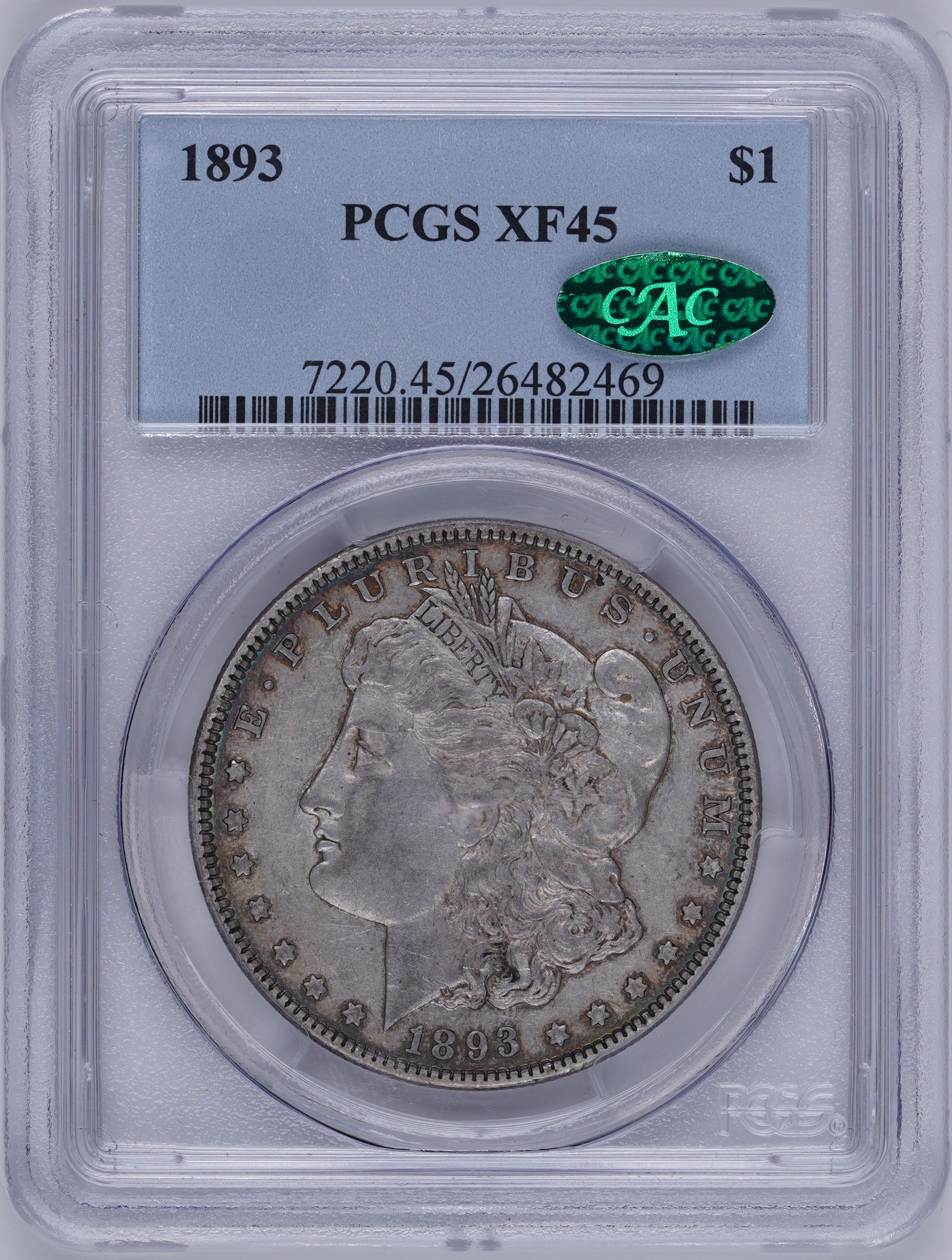 1893 $1 Morgan Silver Dollar PCGS XF45 CAC