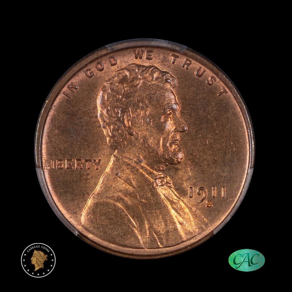 1911-S 1C Lincoln Cent PCGS MS64+RB CAC
