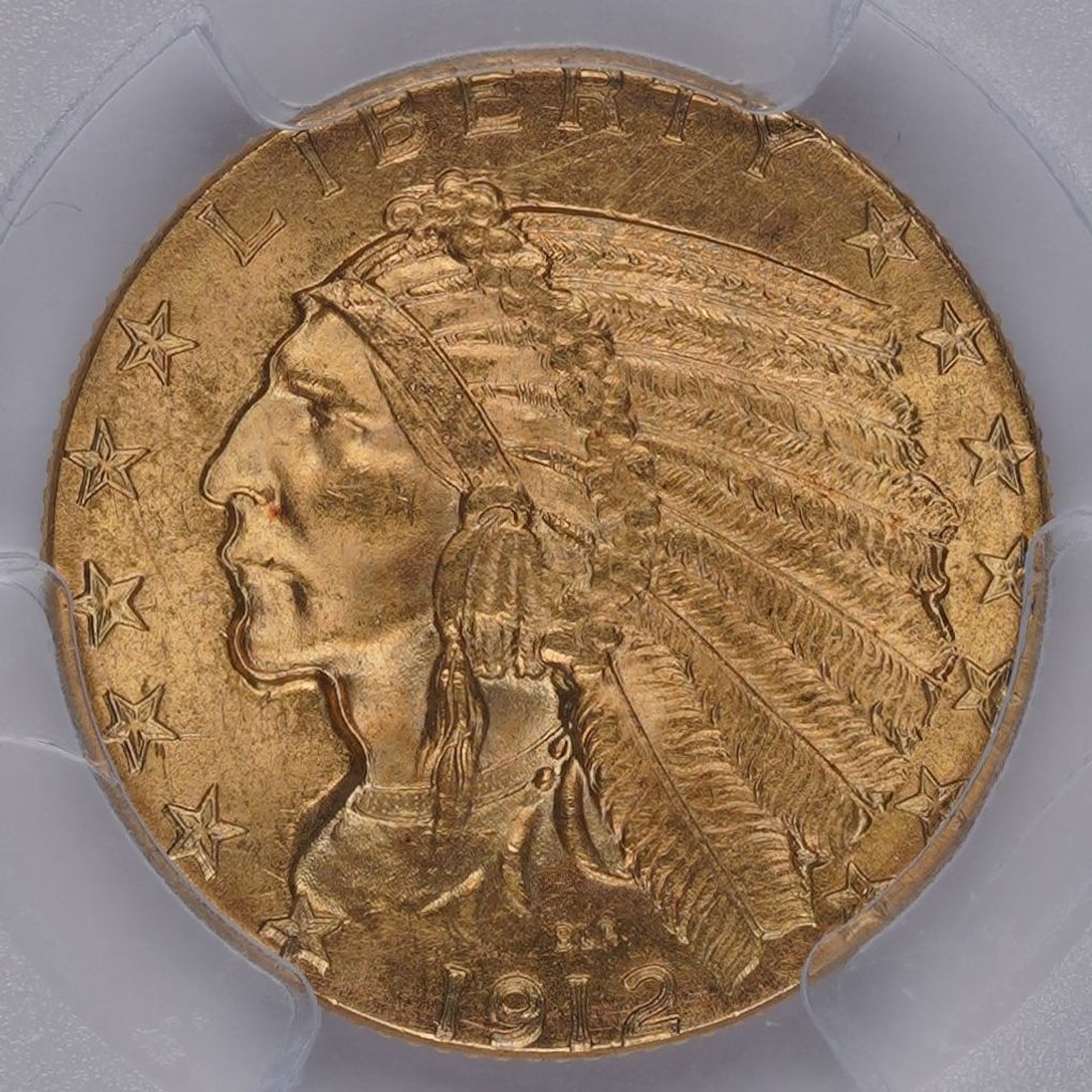Not quite as tough to find as the 1914 $5 MS64 CAC (see other listing), but this 1912 $5 Indian is also pretty rare in the MS64 CAC grade. Why? For one, grading these $5 Indians with the incuse features is really a matter of how much original luster remains in the fields, and with so many decades of storage or handling, it is very tough to find them in gem grades.