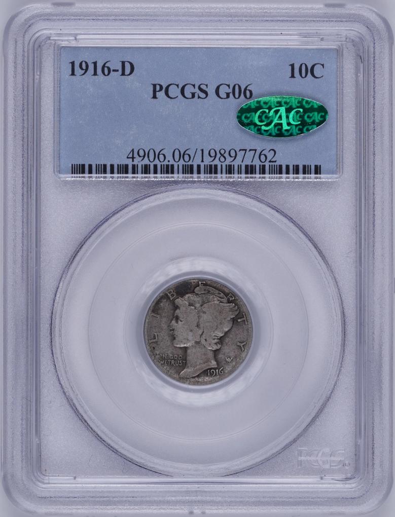 **1916-D 10C Mercury Dime PCGS G06 CAC**
