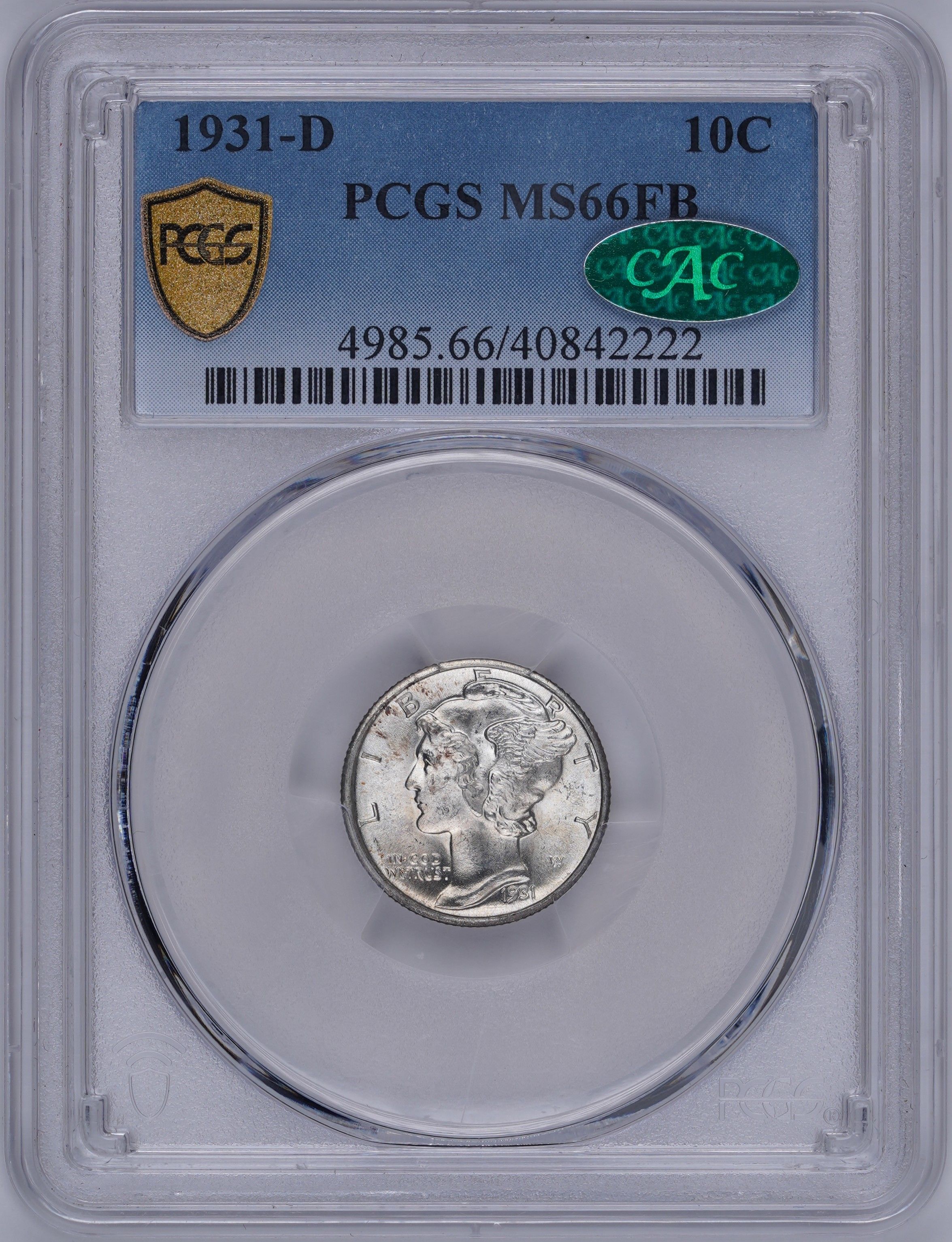 The 1931-D Mercury Dime is an issue that is fairly available in the marketplace. At the 66 Full Bands grade (and with CAC), it is a bit tougher. This coin has booming luster and a fantastic strike. Should be perfect for the registry set collector of Mercury dimes.