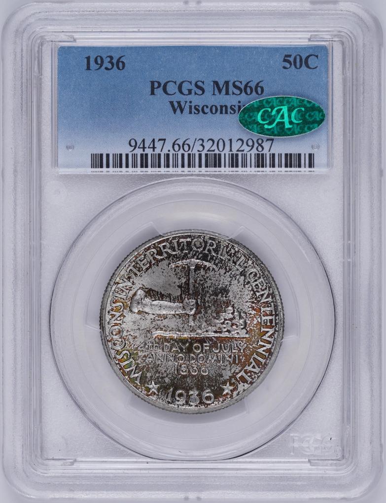 1936 50C Wisconsin Commemorative Half Dollar PCGS MS66 CAC