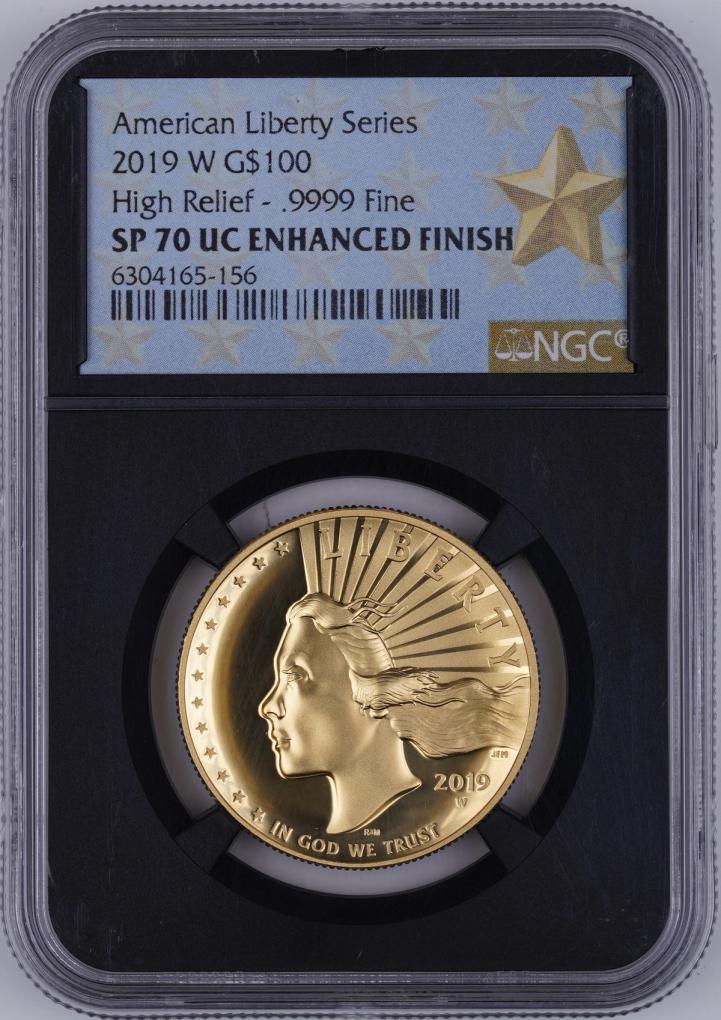 2019-W G$100 Gold High Relief NGC SP70 Ultra Cameo Enhanced Finish